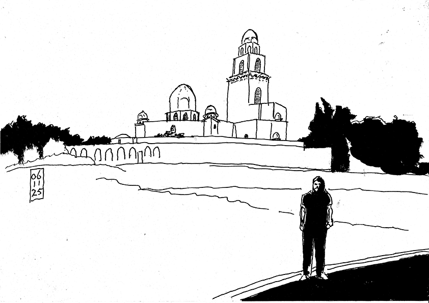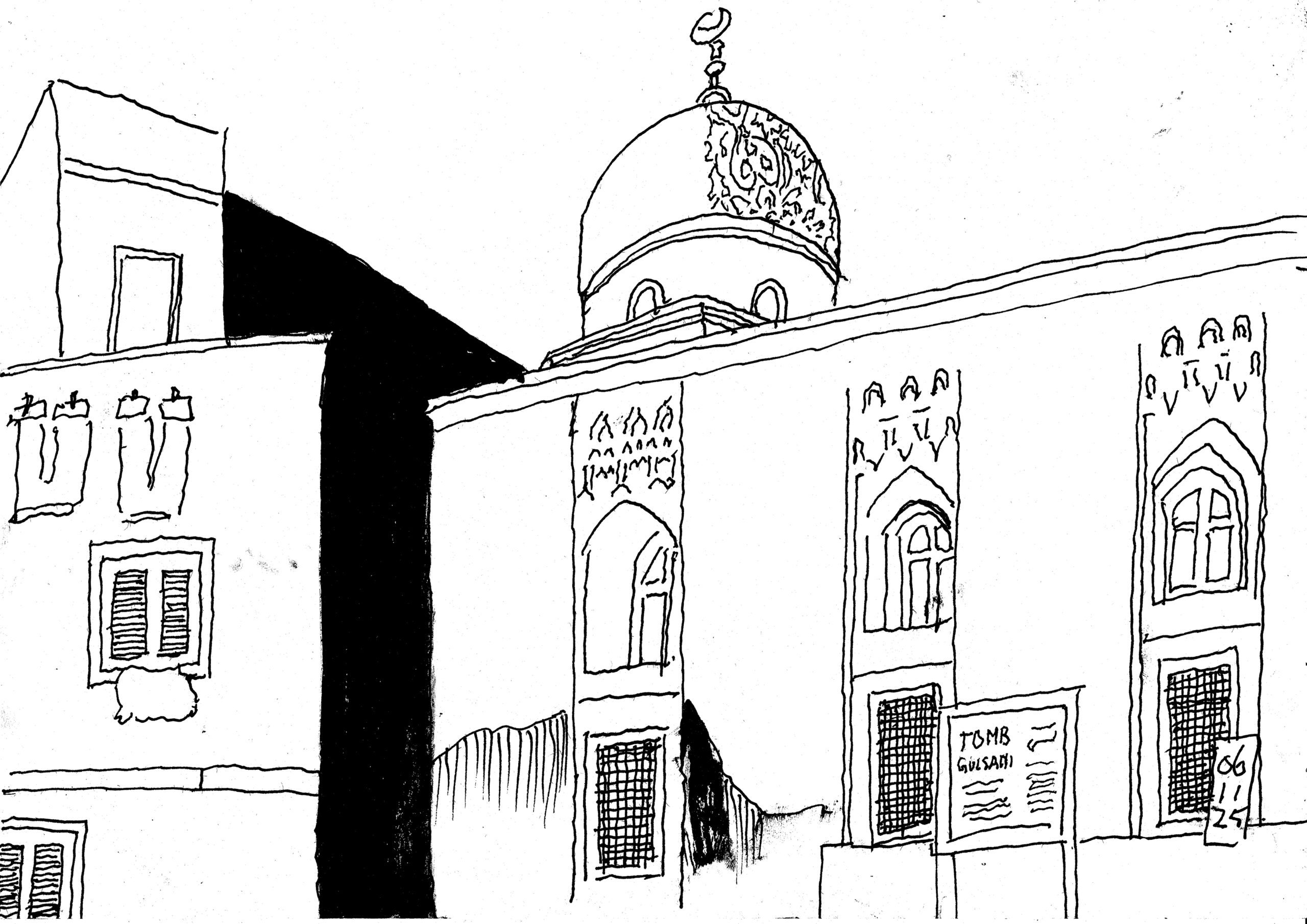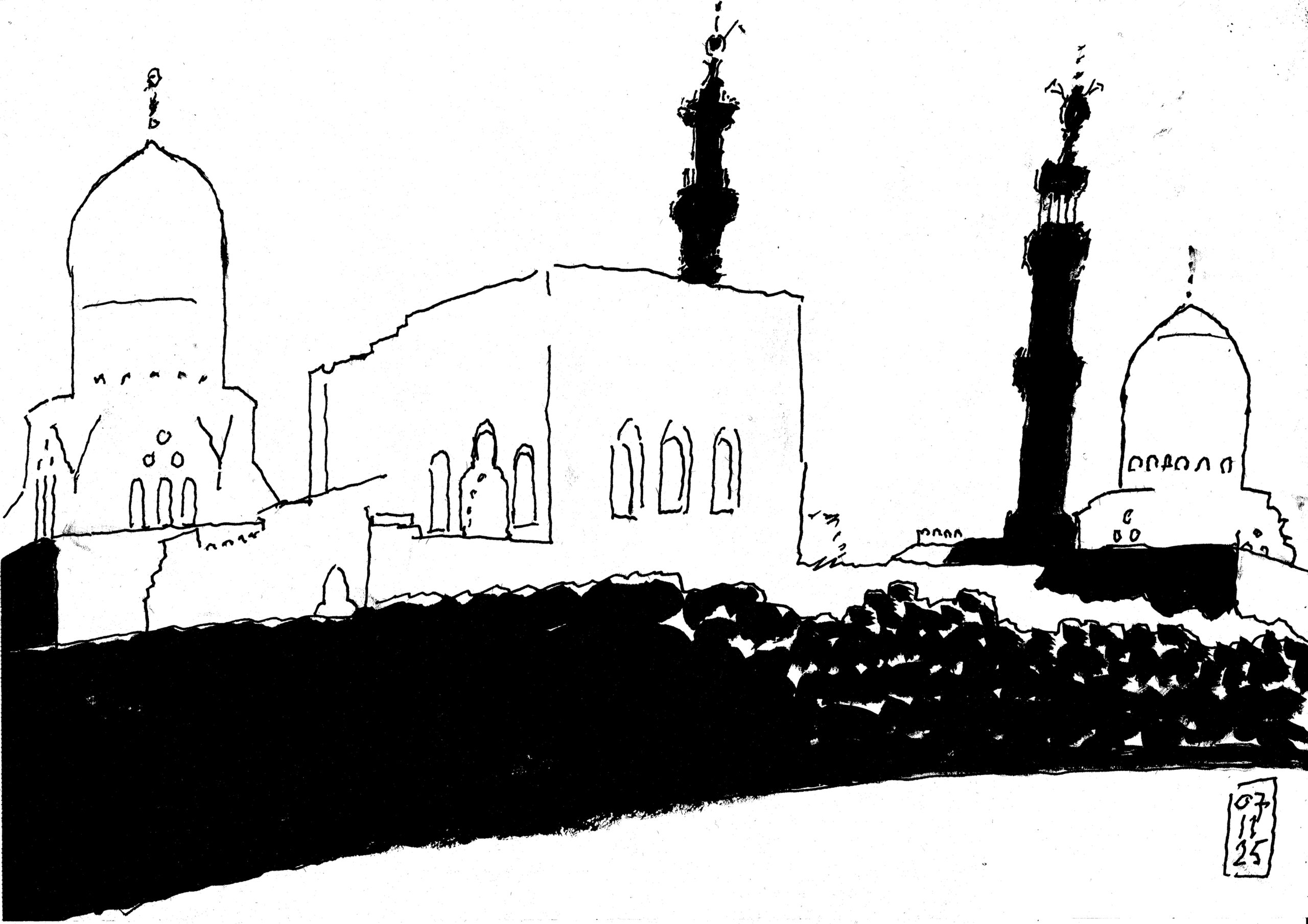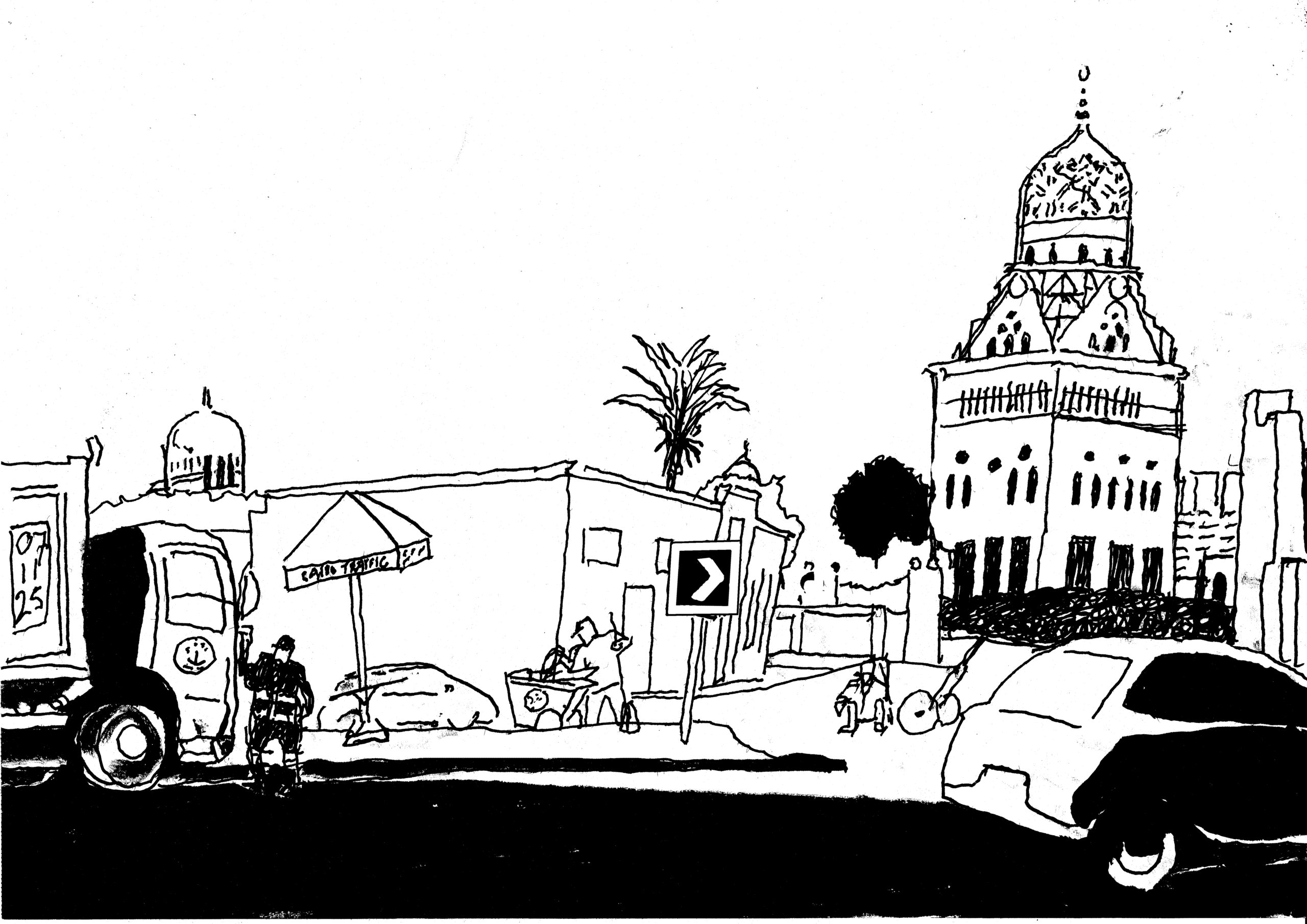 Bertje was my guide and minder in Cairo and Raa’fat my driver. While I was sketching Bertje provided me with information culled from ‘Islamic Cairo in Maps’, Islamic Monuments in Cairo’ and the fabulous ‘The Minarets of Cairo’ by Doris Behrens-Abouseif. My focus was on early minarets. Those from the days of the Abbasids, the Fatimids and some from Mameluks.
