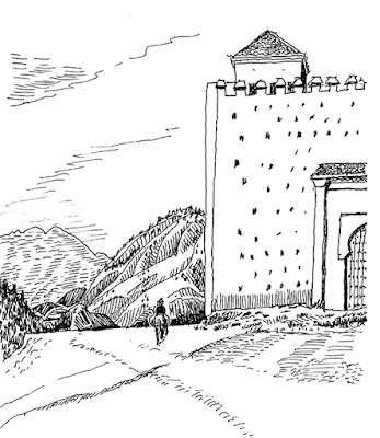 Zo goed als vrouwen en Joden het hadden onder de Almoraviden zo slecht kregen ze het onder de Almohaden. De Almohaden zetten echter wel de steun aan filosofie en bouwkunst voort. Hun bouwstijl was vooral sober zoals de iconische minaret van de Koutoubia moskee, de poorten van Fez en de muren van Marrakesh. Net als de Almoraviden kwamen zij voort uit een herinterpretatie van de Islam. Dit keer was de 11de eeuwse Ibn Toemart de grote inspirator. Na een studie in Cordoba en Bagdad kwam de jonge Ibn Toemart in Marrakesh fulmineren tegen de zedeloosheid van de elite en de vrijheid van de vrouwen. Hij werd uit de stad verjaagd en vestigde zich in Tinmel in het hart van zijn stamgebied in de Hoge Atlas. Hij riep zichzelf uit tot Mahdi ‘wijzer van het juiste pad’: een soort Messias in de Sjiitische traditie. Van zijn hand zou een Koran in het Berber verschenen zijn waar echter nooit sporen van zijn teruggevonden. Hij maakte de onplaatsbaarheid en onstoffelijkheid van God tot centraal dogma. Daaraan ontleende de ‘beweging’ z’n naam: Al Moewahhidoen verbasterd tot Almohaden. Hun rijk beheerste behalve gebieden in Spanje de hele Maghreb. Na een periode van grote bloei viel het rijk in de 13de eeuw uiteen en werd het een makkelijke prooi voor opkomende machten. Onder de Almohaden kwam het Soefisme tot grote bloei. Onderschrift De moskee van Tinmel in de vallei van de Oued N’Fiss is door Ibn Toemart gesticht. Het wordt in goede staat onderhouden, maar heeft zijn status als moskee verloren schijnbaar vanwege het Sjiïtische karakter van de stichter. Daardoor mogen ‘ongelovigen’ het nu wel bezoeken. (14 Marokko ZW)