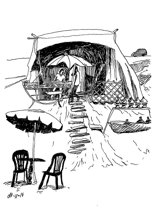 In the sixties and seventies the Atlantic Coast south of Agadir became very popular with back-packing ‘Hippies’. They used the ‘Hippy Trail’ and came via Marrakesh. Most just visited for a day or a week, but some stayed on attracted by the easy life style of the friendly Amazigh. It was an easy life for the youths from Western countries. There were lovely beaches, sun, cheap food and plenty of blow. However when too many came to stay and their lazy beach life started to interfere with the work of the local fishermen the latter revolted. It came to an altercation in Sidi Ifni during which the fishermen cleared the beach. However the Western beach lovers never really went away. The style changed. Forty years onwards the whole coast is being developed. Everywhere the French are building gated holiday villages for the masses and villas for the rich. However villages like Mirleft and Sidi Ifni still ooze a bit of that old hippy ambiance. One of the great perks of the region still is: eating fresh fish straight from the surf on to the BBQ and then to the plate. Everywhere there are flimsy huts in the sand above the flood-line that provide this delicacy.