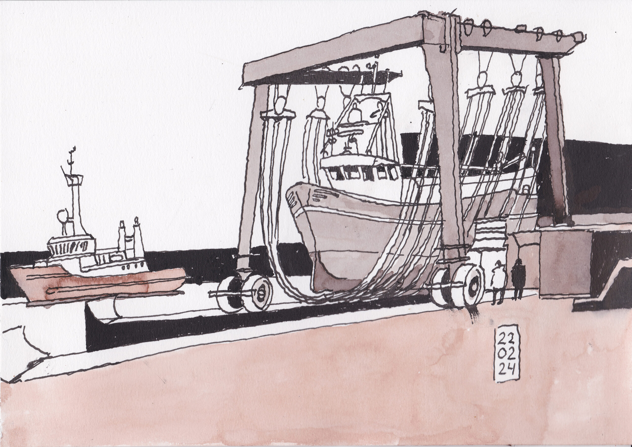 During my forays around the Lauwersmeer I got the idea to use different drawing techniques. Instead of using a fountain pen withe cartridges and cheap sketching papaer I used Fountain pens with carbon inks, a grafite pencil, water colors and aquarel paper. It didn’t always woirk out well. In the beginning I used the wrong inks and the wrong paper.