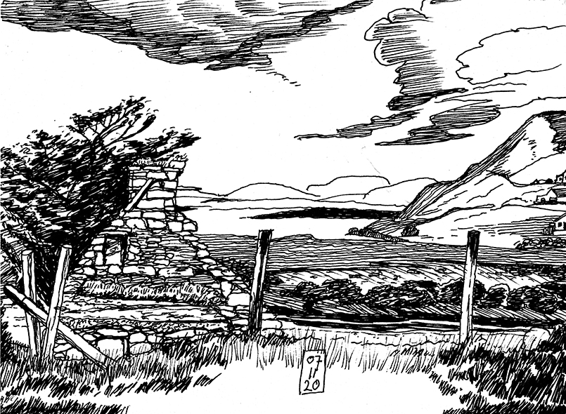 In the first half of October 2020 there suddenly was a spate of infections in the Achill Parish. Even though during a busy summer of ‘Staycation’ Achill had stayed Corona-free. I heard about it when I was making sketches in Dookinella, Achill Island.